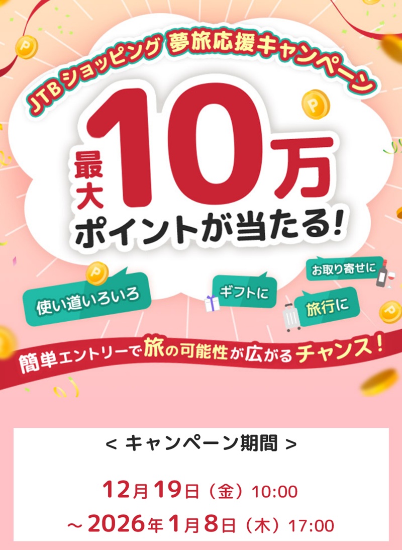 JTBショッピング 夢旅応援キャンペーン【公式キャンペーンサイト】はコチラ
